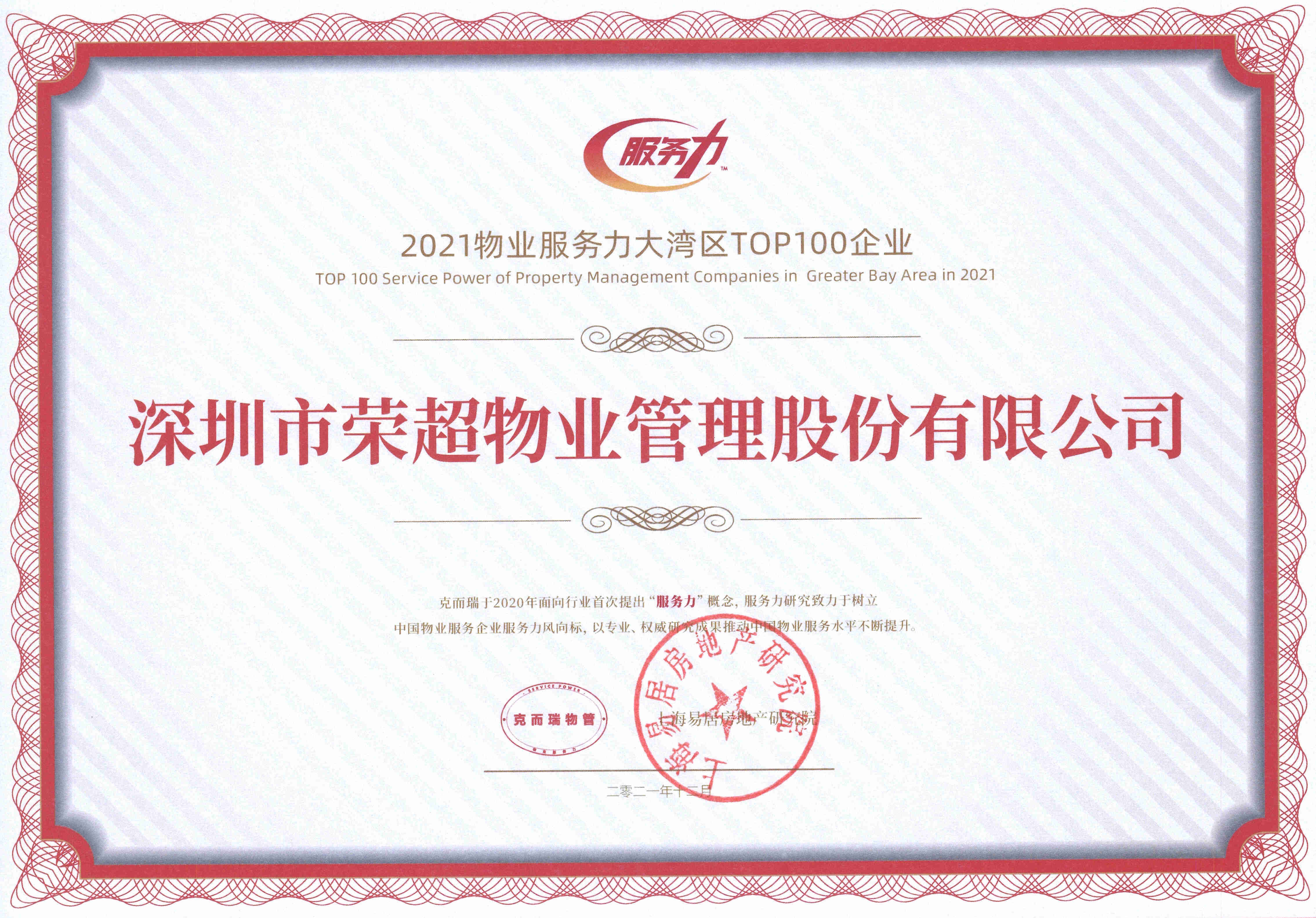 在此次粵港澳大灣區(qū)系列研究成果中,榮超物業(yè)榮登《2021物業(yè)服務(wù)力大灣區(qū)TOP100企業(yè)》榜單,是物業(yè)服務(wù)市場和物業(yè)行業(yè)對榮超物業(yè)服務(wù)和品質(zhì)的認(rèn)可,榮超物業(yè)將繼續(xù)載譽(yù)前行,用專業(yè)打造行業(yè)標(biāo)桿,堅持商務(wù)服務(wù)本色不改,匠心品質(zhì)篤定前行,為業(yè)戶創(chuàng)造獲得感、幸福感、安全感。